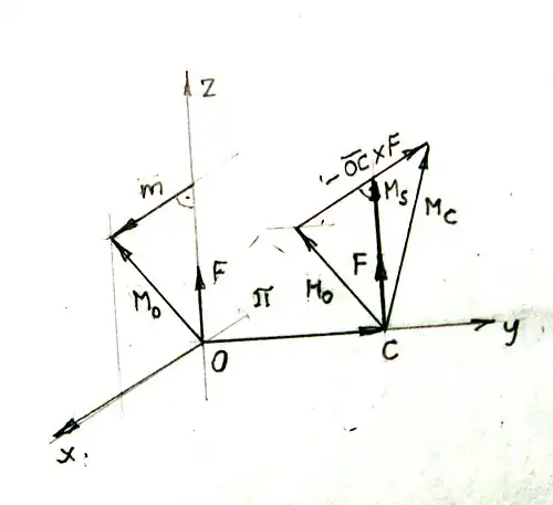 W tym celu przez punkt prowadzimy płaszczyznę prostopadłą do wektora Na płaszczyźnie tej umieszczamy parę sił o momencie równym i tak aby punkt leżał na linii działania jednej z nich. Sumujemy dwa współśrodkowe wektory i i otrzymujemy w ten sposób dwa wektory i nie leżące na jednej płaszczyźnie, czyli zwichrowane i równoważne dwom wektorom wyjściowym i