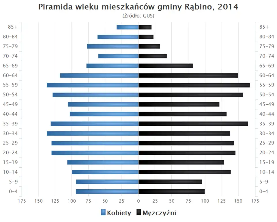 - Piramida wieku mieszkańców gminy Rąbino w 2014 roku[3].