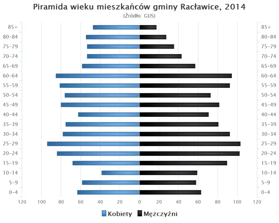 - Piramida wieku mieszkańców gminy Racławice w 2014 roku[2].