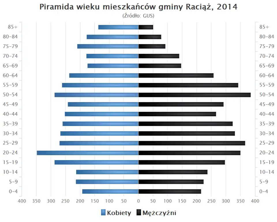 - Piramida wieku mieszkańców gminy Raciąż w 2014 roku[14].