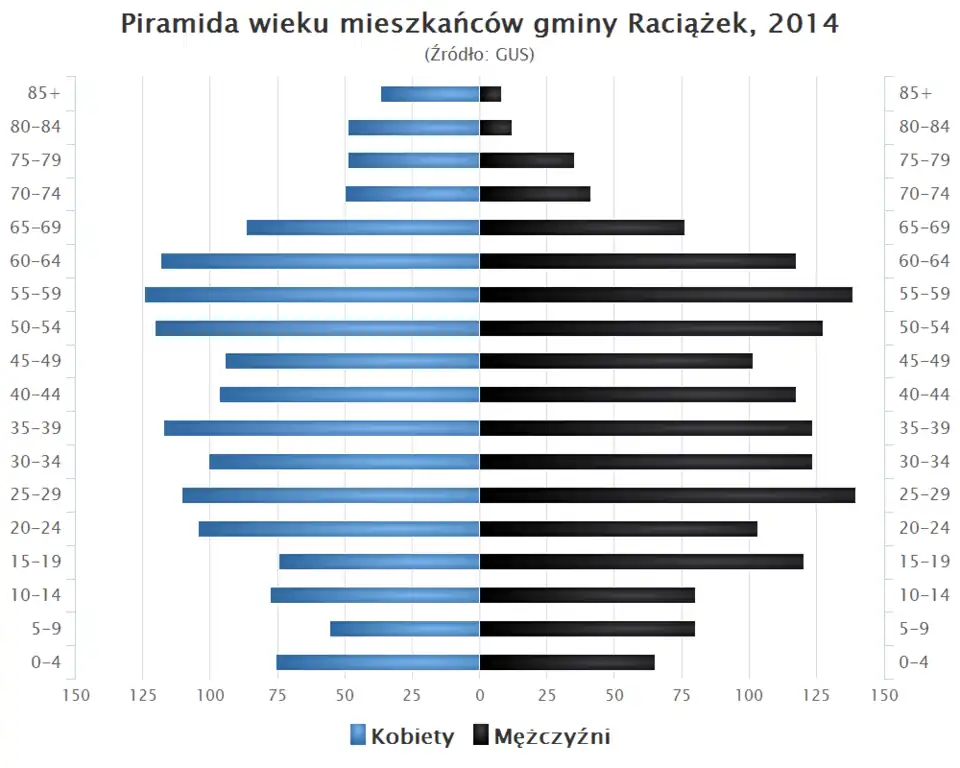- Piramida wieku mieszkańców gminy Raciążek w 2014 roku[1].
