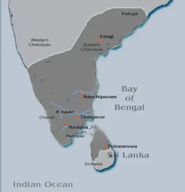 - ↑ K.A. Nilakanta Sastri: A History of South India: From Prehistoric Times to the Fall of Vijayanagar. Madras: Oxford University Press, 1958, s. 173. ISBN 0-19-560686-8.