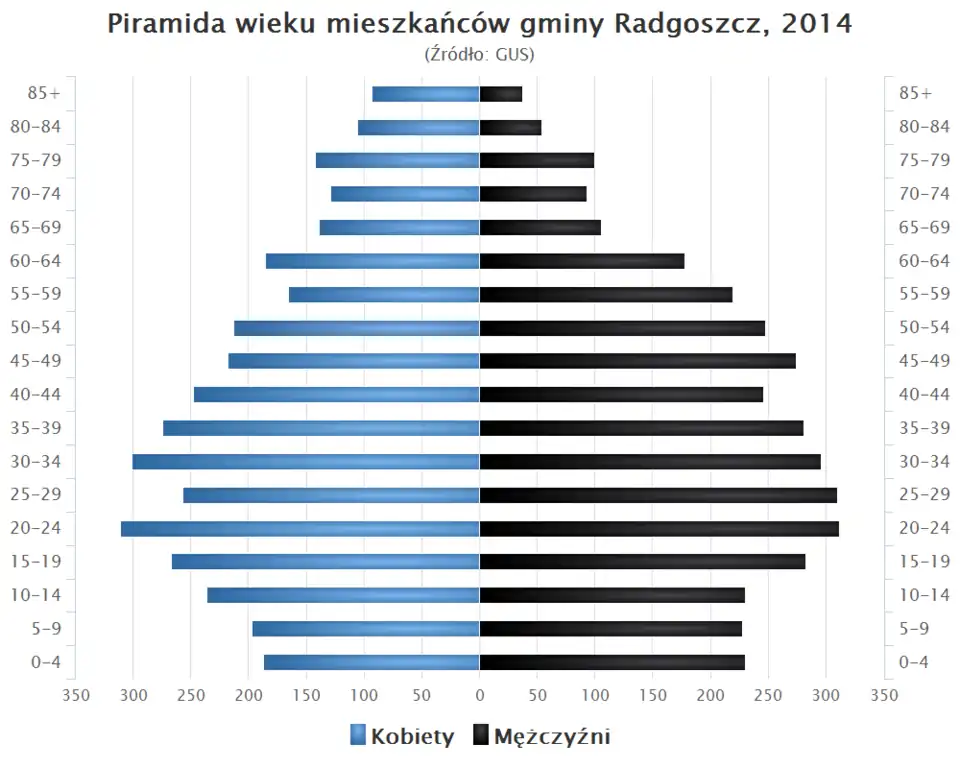 - Piramida wieku mieszkańców gminy Radgoszcz w 2014 roku[1].