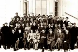- ↑ Szczecin, 1945. W pierwszym rzędzie szósty od lewej kierownik rozgłośni szczecińskiej PR Zdzisław Karczewski.