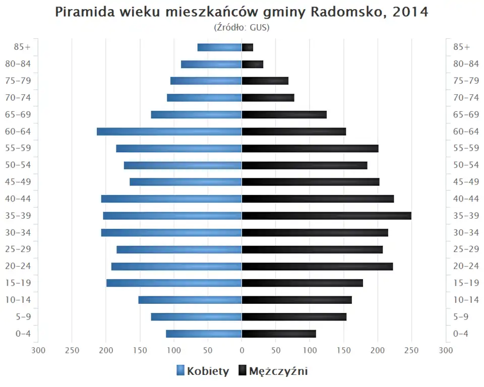 - Piramida wieku mieszkańców gminy Radomsko w 2014 roku[1].