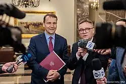 12 grudnia 2023 Sejm X kadencji wybrał go na urząd ministra spraw zagranicznych w trzecim rządzie Donalda Tuska[67][68]. Następnego dnia został przez prezydenta RP Andrzeja Dudę powołany na to stanowisko[69]. W konsekwencji wygasł jego mandat eurodeputowanego; w Parlamencie Europejskim zastąpił go Krzysztof Brejza[70].