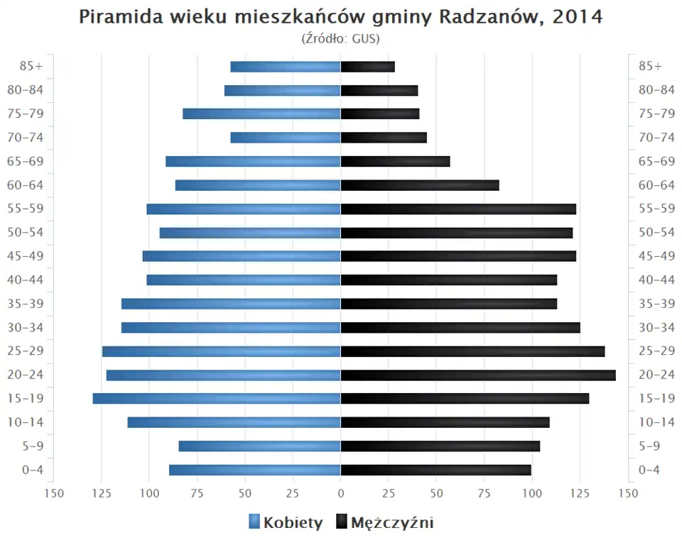 - Piramida wieku mieszkańców gminy Radzanów w 2014 roku[6].