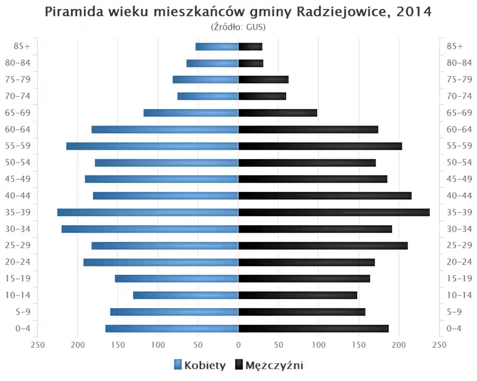 - Piramida wieku mieszkańców gminy Radziejowice w 2014 roku[8].