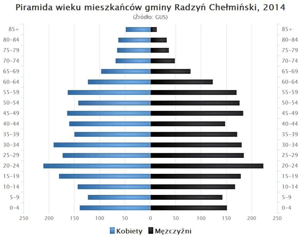 - Piramida wieku mieszkańców gminy Radzyń Chełmiński w 2014 roku[1].