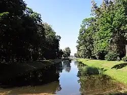 Pałacowa oranżeria stanowi dzieło Jakuba Fontany i jego współpracowników budujących pałac Potockich. Jest to budynek usytuowany na rzucie dwóch krzyżujących się prostokątów z fasadą od strony południowej. Wyraźnie widoczne kolumny i pilastry jońskie podtrzymują belkowanie, na których znajdują się rzeźby przedstawiające rydwan Apollina wyjeżdżający na niebieski firmament. Boczne ryzality fasady oranżerii ozdobione są wazonami i puttami.