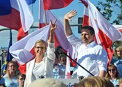 - ↑ Zaskakujący gest Senyszyn na marszu Trzaskowskiego. Oddała czerwone korale [online], TOK FM, 25 maja 2025 [dostęp 2025-05-25].