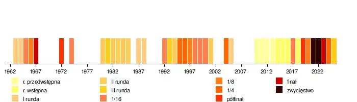| Sezon | Rozgrywki ligowe | Puchar Polski (rozgrywki centralne) | ||||||||||