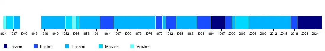 | 1956 | IV | Klasa A | 3 | 18 | 21 | – | ||||||