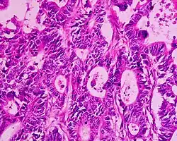 - gruczolakorak (łac. adenocarcinoma) – struktury gruczołowe bardzo dobrze widoczne,
