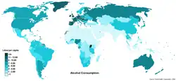 Przewlekłe spożywanie alkoholu zwiększa ryzyko raka wątrobowokomórkowego[69][70][71]. W Europie i Ameryce Północnej 80% przypadków choroby rozwija się na bazie marskości wątroby, gdzie alkohol jest jednym z najważniejszych czynników ryzyka, natomiast w Azji prawie 50% przypadków raka rozwija się bez marskości[33][34].