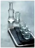 Tradycyjnie powinna być serwowana w niewielkich kieliszkach o pojemności 30–50 ml, często ze szklanej karafki w kształcie buteleczki.