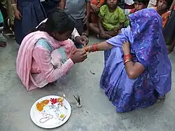 Nić nazywana jest rakhi lub rakszasutra (nić ochrony). Rakhi symbolizuje braterski związek między dwiema osobami, niekoniecznie połączonych więzami krwi, kasty, narodowości czy religii. W zamian „brat” obdarowuje „siostrę” słodyczami i zobowiązuje się ją bronić. Bywa czasami, że obydwie osoby są płci żeńskiej.
