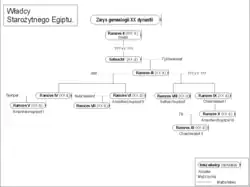 Ramzes IV, Ramzes VI, Ramzes VIII, Amonherchopszef, Pentawer, Pareherwenemef, Keamweset, Meriatum II, Parachi, Parahirenemef, Sethirchoszef, Montucherkopszef, Dautentopet |