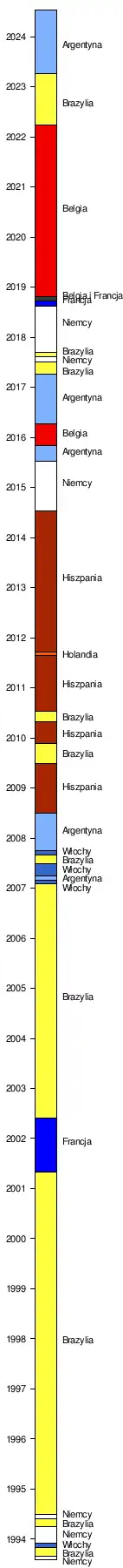 | 2 | Ameryka Południowa | 1 (Brazylia, Argentyna) |