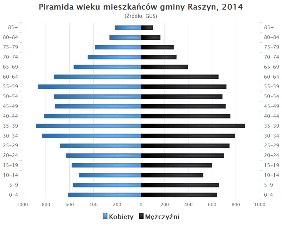 - Piramida wieku mieszkańców gminy Raszyn w 2014 roku[6].