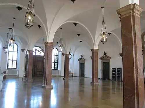 Sala Książęca (Fürstenzimmer) to reprezentacyjny gabinet burmistrza Augsburga, w którym przyjmuje najważniejszych gości i uroczyście podpisuje dokumenty. Pokój ma powierzchnię 150 m². Sufit pokryty jest kasetonami. W rogu stoją flagi UE i Augsburga z drzewcami zakończonymi godłem Augsburga - Pyrem[a]