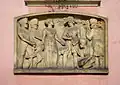 We wschodniej ścianie wmurowano płaskorzeźbę, przedstawiającą rozbrajanie napoleońskiego marszałka, Guillaume'a Brune'a przez mieszkankę miasta, Rozalię Joannę von Bonin[6].