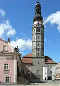 Najstarsza siedziba radnych z XIV w. uległa zniszczeniu podczas wojen husyckich[1]. Kolejny budynek postawiono w 1432 roku[1].