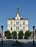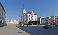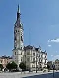 Wzniesiona w 1872 roku eklektyczna budowla w niczym nie przypomina poprzedniego ratusza[3]. Założony na planie prostokąta, trzykondygnacyjny okazały budynek nakryty jest blaszanym, czterospadowym dachem ozdobionym trójkątnymi neobarokowymi szczytami[4]. Na frontowej fasadzie wyrasta ośmioboczna wieża nakryta ostrosłupowym blaszanym hełmem[3]. Budynek zdobią fryzy, gzymsy i obramienia okienne[3].