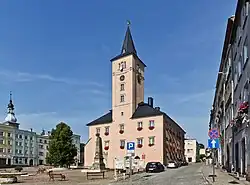 Ratusz został wzniesiony w roku 1545, a w roku 1609 był przebudowany[1]. W 1738 budowla spłonęła, a po odbudowaniu służyła jako kościół ewangelicki[2]. W roku 1852 do bryły ratusza dobudowano wieżę[2]. W roku 1885 wieża została nakryta hełmem i od tego czasu obiekt nie uległ większym zmianom[1]. W czasie II wojny światowej ratusz uległ uszkodzeniu, a w 1955 został poddany renowacji[3].