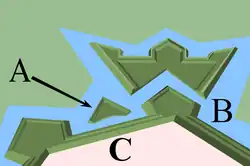 Rawelin zastąpił wcześniejsze dzieło fortyfikacyjne pod postacią półksiężyca o narysie półokrągłym[1]. Jest dziełem odkrytym od tyłu i o dwóch czołach.