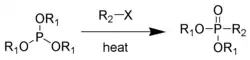 - (RO)2PONa + R'X → R'P(O)(RO)2 + NaX