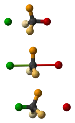 - substytucja (podstawienie) – w wyniku tej reakcji w cząsteczce następuje wymiana atomu lub ich grupy; jeden atom lub ich grupa odrywa się od cząsteczki, a inny atom lub ich grupa się w to miejsce przyłącza;