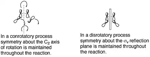 Z powodu istnienia cząsteczki w stanie wzbudzonym zachowanie symetrii orbitali możliwe jest jedynie gdy reakcja przebiega w sposób dysrotacyjny.