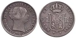 Po wprowadzeniu systemu dziesiętnego w 1850 real podzielono na 100 centimos. 1 real był monetą srebrną próby 900, ważącą 1,31 grama. Emitowano monety: