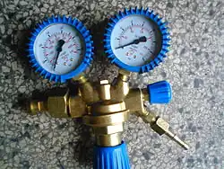 Regulator ciśnienia – zawór sterujący ciśnieniem, nastawiany ręcznie, utrzymujący stałą wartość ciśnienia na wyjściu, niezależnie od zmian, wyższego ciśnienia wejściowego, przy zmiennej wartości natężenia przepływu czynnika przez zawór.