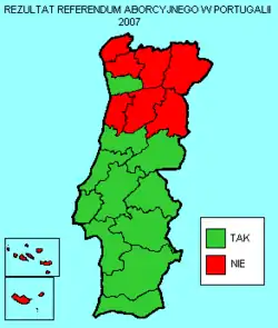 11 lutego 2007 w Portugalii miało miejsce referendum w sprawie prawa legalizującego zabieg usunięcia ciąży nie starszej niż 10 tygodni. Zorganizowanie referendum w sprawie aborcji było spełnieniem obietnicy złożonej przez rządzącą Partię Socjalistyczną kierowaną przez premiera José Sócratesa.[1]