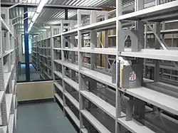 - na książki, na roczniki czasopism, na czasopisma bieżące (z półką tzw. licową na najnowszy numer i kasetą na poprzednie numery), na różne rodzaje zbiorów specjalnych – m.in. z szufladami do map arkuszowych i afiszów, z wieszakami do map zwiniętych, z pionowymi przegródkami do patentów czy norm