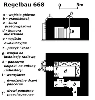 - Do schronu Regelbau 668 można było "dobudować" mały schron bojowy Ringstand 58c[2]