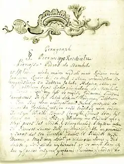- Do Michała Radziwiłła Rybeńko, dat. ze Lwowa 30 września 1748, ogł. przy wyd. R. Pollak i M. Pełczyński pt. "Proceder podróży i życia mego awantur", Kraków 1957, Pamiętniki i wspomnienia, seria I: Pamiętniki Polskie