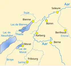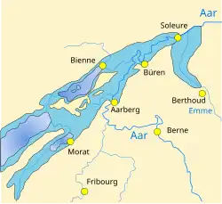 W latach 1831 i 1832 miały miejsce dwa wielkie wylewy rzeki Aare, które spustoszyły okolice Nidau. Już w następnym roku (1833) na prośbę komitetu obywatelskiego z Nidau, działającego pod kierunkiem miejscowego lekarza Johanna R. Schneidera władze kantonu Berno zleciły Janowi P. Lelewelowi, wówczas dyrektorowi kantonalnego Biura Technicznego, opracowanie projektu regulacji stosunków wodnych i osuszenia podmokłych terenów regionu Seelandu. Przy pomocy kilku polskich pomocników Lelewel rozpoczął w maju 1834 r. rozległe badania terenowe i pomiary, których wynikiem był projekt opatrzony 18 planami i uzupełniony szacunkowym kosztorysem inwestycji. Już 19 października 1834 r. przedstawiciele 60 gmin z czterech zainteresowanych kantonów ocenili i przyjęli przedstawione plany[1]. Zanim jednak doszło do powołania stosownego towarzystwa akcyjnego, swe plany (w wielu punktach zbieżne z propozycjami Lelewela) przedłożył główny inżynier Gryzonii, Richard La Nicca i w końcu to on w 1840 r. objął kierownictwo projektu.