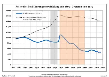 Wykres zmian populacji Reitwein w granicach z 2013 r. od 1875 r.: