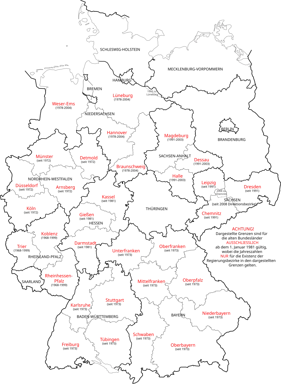 Obecnie rejencje posiadają 4 kraje związkowe: