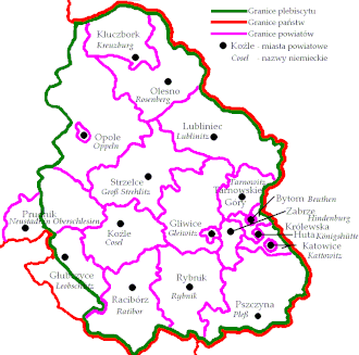 Do RP odszedł też prawie cały powiat tarnogórski, większość lublinieckiego, a także niewielkie części toszecko-gliwickiego, zabrskiego, raciborskiego i bytomskiego bez ich stolic.