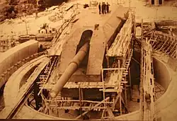 Przy wjeździe do miasta, częściowo na terenie dawnej baterii niemieckiej 406 mm, stacjonowała jednostka saperska. Jej park maszynowy był zlokalizowany tuż przy jednym ze stanowisk ogniowych w obrębie podpór suwnic montażowych działa.