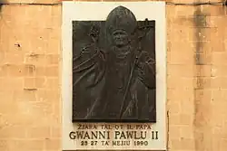 Papież Jan Paweł II odbył trzy wizyty apostolskie na Maltę: dwukrotnie w 1990 i raz w 2001. W czasie ostatniej wizyty beatyfikowanych zostało troje Maltańczyków: George Preca (który został kanonizowany w 2007), Nazju Falzon oraz Adeodata Pisani.