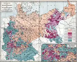 W okresie międzywojennym ponad połowa Niemców należała do Kościoła Ewangelickiego, a mniej niż połowa do Kościoła rzymskokatolickiego[6]. Stan ten utrzymywał się do lat siedemdziesiątych, kiedy oba Kościoły zaczęły tracić wiernych[7].
