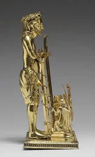 Relikwiarz z Mężem Boleści i aniołami – gotycki relikwiarz wykonany przez czeski warsztat złotniczy w latach 1347-49. Zlecenie tego dzieła złotnictwa jest kojarzone z Janem Volkiem, biskupem Ołomuńca (Morawy), który sprawował tę funkcję w latach 1334–51 oraz królem Czech i margrabią Moraw a od 1356 roku cesarzem rzymskim Karolem IV Luksemburgiem. Pierwotnie relikwiarz znajdował się w katedrze Świętego Wita na Hradczany w Pradze. W 1903 roku relikwiarz nabył znany amerykański kolekcjoner dzieł sztuki Henry Walters, zaś w 1931 roku został przekazany do Walters Art Museum w Baltimore, gdzie znajduje się do dziś.