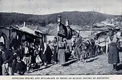 - ↑ In a series of reports, the newspaper's correspondents informed the readers: On August 7, The Governor's Palace at Krushevo Blown Up. Fifty Turks Killed. The Porte to Adopt "Measures of Extreme Severity"; On Aug. 8, Bulgarian bands have occupied Krushevo and are besieging other villages near Monastir; On August 14, Four thousand Turkish troops are bombarding the town, and the Bulgarians there are suffering severely; On August 15, Ruthless Massacres by Both Sides Reported. All the Turks in Krushevo Slain, Mussulmans Said to Have Killed Nearly All the Christians in Kitshevo; On August 22, Three Hundred Bulgarians Slain in Krushevo, Besides Innocent Greeks and Vlachs. 8,000 People Starving.
