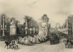 Całość jest wspaniała. Olbrzymia masa, cała pozłacana, której piętra rosną w piramidzie na czterech wielkich pozłacanych kołach, które to dźwigają. (...) Właściwa trumna nie jest widoczna. Została ona umieszczona w podstawie powozu, co zmniejsza emocje. Jest to poważna wada konduktu. Skrywa to, co chce się widzieć: to, co Francja odzyskała, czego ludzie wyczekiwali, czego szukały wszystkie oczy – na trumnę Napoleona[20].