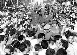 ![]() Przywódcy rewolucji: Muhammad Nadżib (po lewej) i Gamal Abdel Naser (po prawej) w rządowym Cadillacu | |||